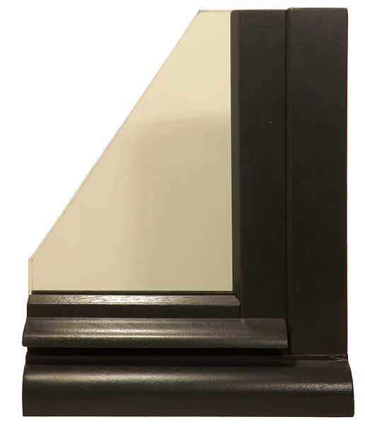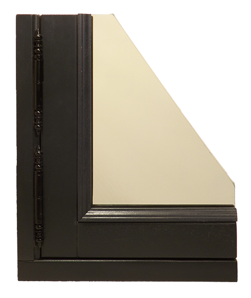 - Ouvrants de 58 ou 68mm à 1 joint ; moulure extérieure à pente de 30° (façon mastic d'autrefois), parclose intérieure et jet d'eau à doucine.